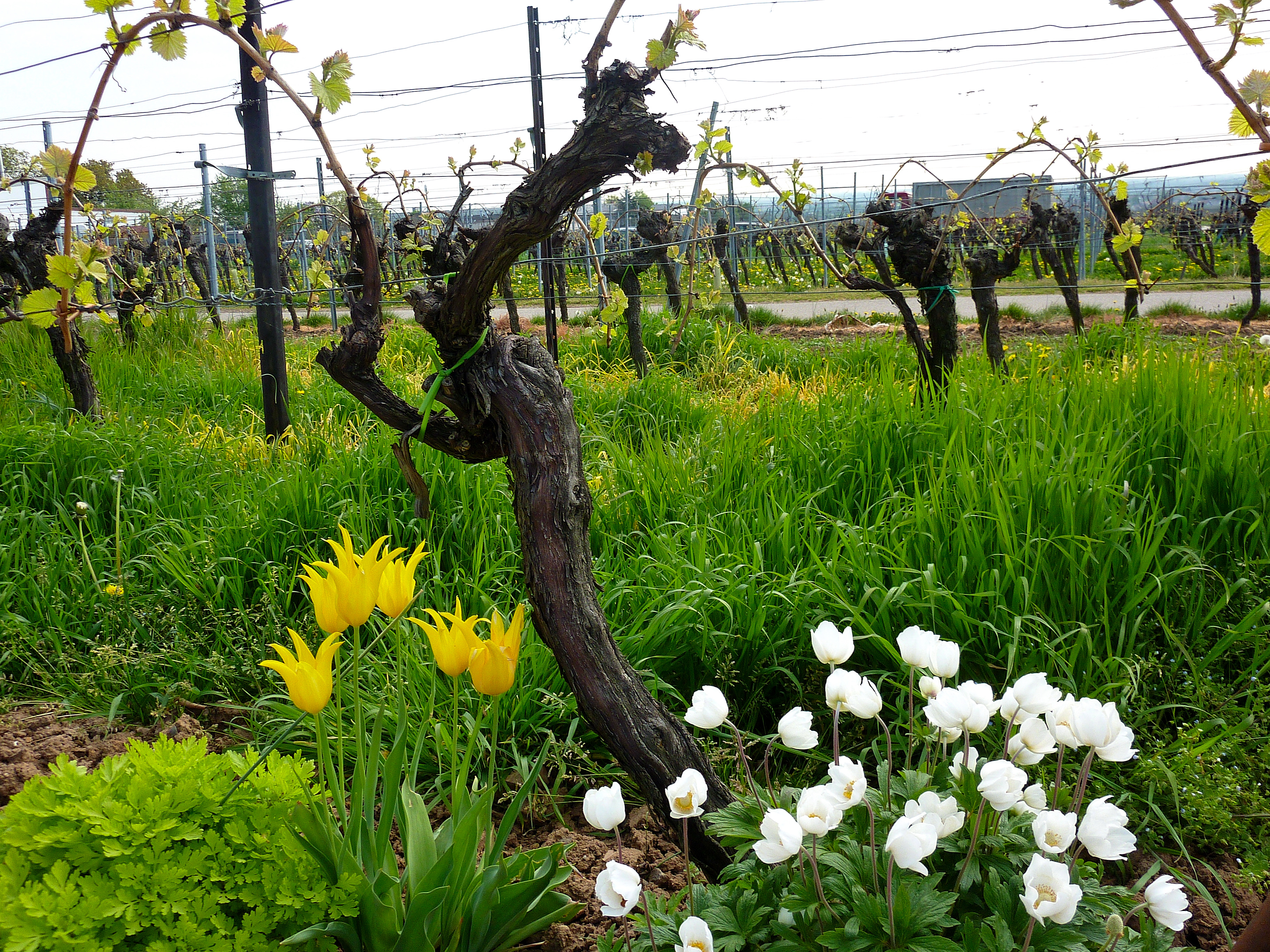 24. Mai 2016Ja, eigentlich sollte es ja hier in der Pfalz schon sommerlich oder wenigstens richtig Frühling sein. Aber irgendwie klappt das in diesem Jahr nicht so ganz.Mal werden wir ein zwei Tage von Sonne und warmen Temperaturen verwöhnt und dann kann man schon wieder die Socken und dicke Pullis raus kramen. Aber wir geben die Hoffnung nicht auf und sind überzeugt, dass das Sprüchlein „Schaltjahre sind Kaltjahre“ nicht zutreffen wird…Die Reben stehen soweit ganz gut, der Austrieb ist relativ zeitgemäß erfolgt und so starten wir die Arbeiten mit der Maschine in den Weinbergen.Die ersten Runden Pflanzenschutz sind gefahren, alle Anlagen schon zweimal gemulcht und zur Zeit brechen wir gerade die Stocktriebe aus.Leo freut sich wieder, dass doch ein bisschen Handarbeit ansteht und er fleißig helfen darf.